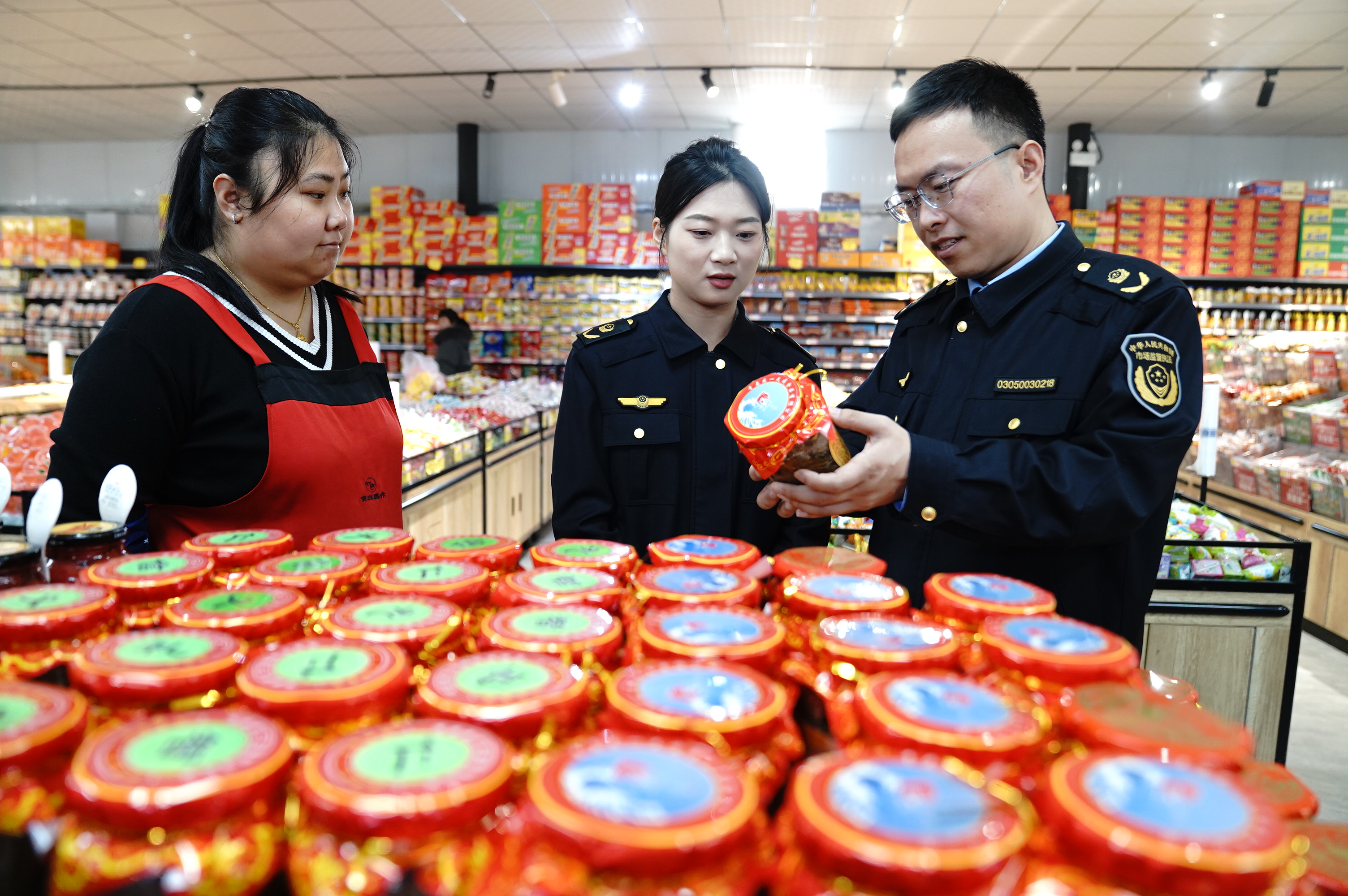 3月11日,河北邢臺(tái)市市場(chǎng)監(jiān)督管理局邢臺(tái)經(jīng)濟(jì)開(kāi)發(fā)區(qū)分局工作人員正在查看商品標(biāo)示 。(1)
