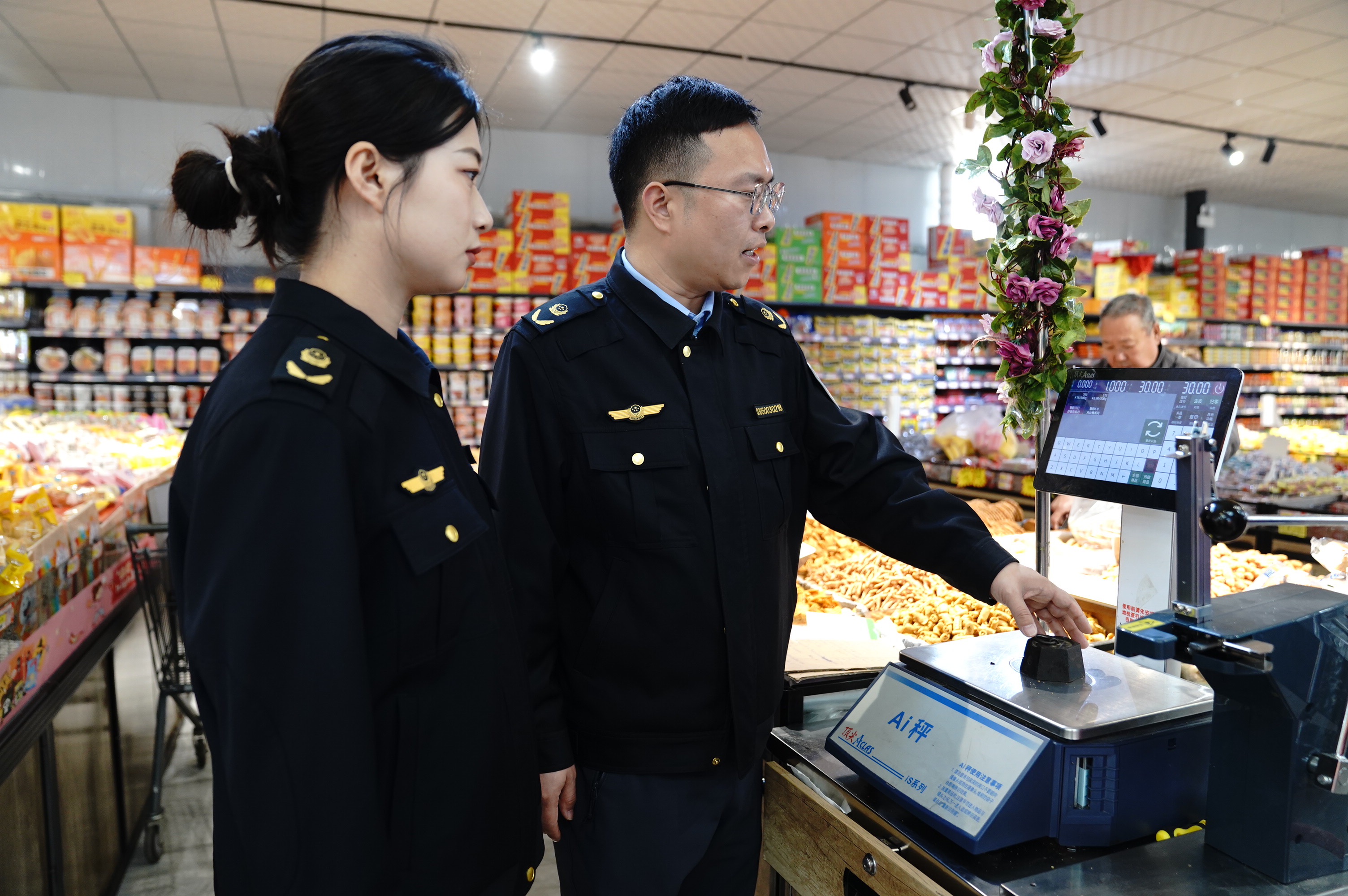 3月11日,河北邢臺(tái)市市場(chǎng)監(jiān)督管理局邢臺(tái)經(jīng)濟(jì)開(kāi)發(fā)區(qū)分局工作人員正在檢定公平秤 。(2)