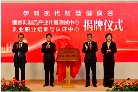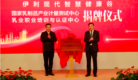 為深入貫徹落實習(xí)近平總書記在內(nèi)蒙古考察期間提出的“加快探索以生態(tài)優(yōu)先、綠色發(fā)展為導(dǎo)向的高質(zhì)量發(fā)展新路子”重要指示精神,圍繞制造強國、質(zhì)量強國和人才強國戰(zhàn)略,全面推進(jìn)國家產(chǎn)業(yè)計量測試服務(wù)體系與人才認(rèn)證體系建設(shè),助力內(nèi)蒙古自治區(qū)經(jīng)濟(jì)及乳制品產(chǎn)業(yè)高質(zhì)量發(fā)展,由內(nèi)蒙古自治區(qū)計量測試研究院與伊利集團(tuán)聯(lián)合共建的“國家乳制品產(chǎn)業(yè)計量測試中心”以及由伊利集團(tuán)聯(lián)合中國乳協(xié)、中國奶協(xié)共同成立的中國首家“乳業(yè)職業(yè)培訓(xùn)與認(rèn)證中心”同時落戶伊利現(xiàn)代智慧健康谷,12月3日,兩大中心揭牌儀式在伊利全球人才發(fā)展中心舉行。內(nèi)蒙古自治區(qū)黨委常委、呼和浩特市委書記包鋼,呼和浩特市委副書記、市長、和林格爾新區(qū)黨工委書記賀海東,內(nèi)蒙古自治區(qū)市場監(jiān)督管理局局長白清元,內(nèi)蒙古自治區(qū)市場監(jiān)督管理局副局長、內(nèi)蒙古計量測試研究院院長呂金華,中國奶業(yè)協(xié)會副秘書長李棟,中國乳制品工業(yè)協(xié)會副秘書長王麗榮,伊利集團(tuán)董事長潘剛,伊利集團(tuán)執(zhí)行總裁張劍秋等出席揭牌儀式。