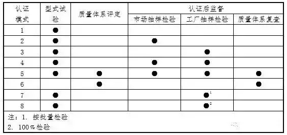 國際上通用的認證模式為八種,具體可歸納為下表: