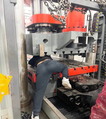 因該實(shí)驗(yàn)儀器的特點(diǎn),技術(shù)人員只能保持趴著的姿勢進(jìn)行計(jì)量工作。為不影響該設(shè)備第二天正常使用,河南省計(jì)量院力學(xué)兩位技術(shù)人員決定連夜進(jìn)行檢定。連續(xù)近7個(gè)小時(shí)的檢定,凌晨時(shí)分終于完成檢定任務(wù)。