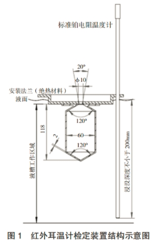 液槽工作區(qū)域的尺寸應(yīng)能容納耳溫計(jì)黑體空腔并保證標(biāo)準(zhǔn)溫度計(jì)浸沒深度不小于 200mm。液槽的溫度穩(wěn)定性不超過 0.010℃ /10min,溫度均勻性優(yōu)于 0.020℃。恒溫液槽的測試方法可參考恒溫槽技術(shù)性能測試規(guī)范,但在測量時(shí)使用溫度計(jì)的選擇上需要特別注意,對于工作區(qū)域上表面與恒溫液槽液面距離較?。ū热?3cm)的情況下,應(yīng)采取適宜的溫度傳感器,并采取措施減小溫度計(jì)套管或?qū)Ь€熱損失對溫度計(jì)測量結(jié)果的影響。