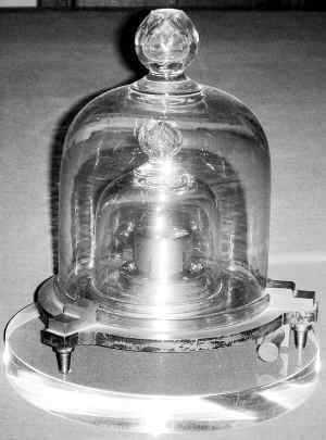 早在我們中學(xué)的物理課本中,對質(zhì)量單位千克的實物基準標準千克砝碼原器已做了詳細的介紹。那是1871年,法國為了改變質(zhì)量單位混亂的局面,規(guī)定了1立方分米的純水在4℃時的質(zhì)量是1千克,并用鉑制作了標準千克原器,保存在法國檔案局。