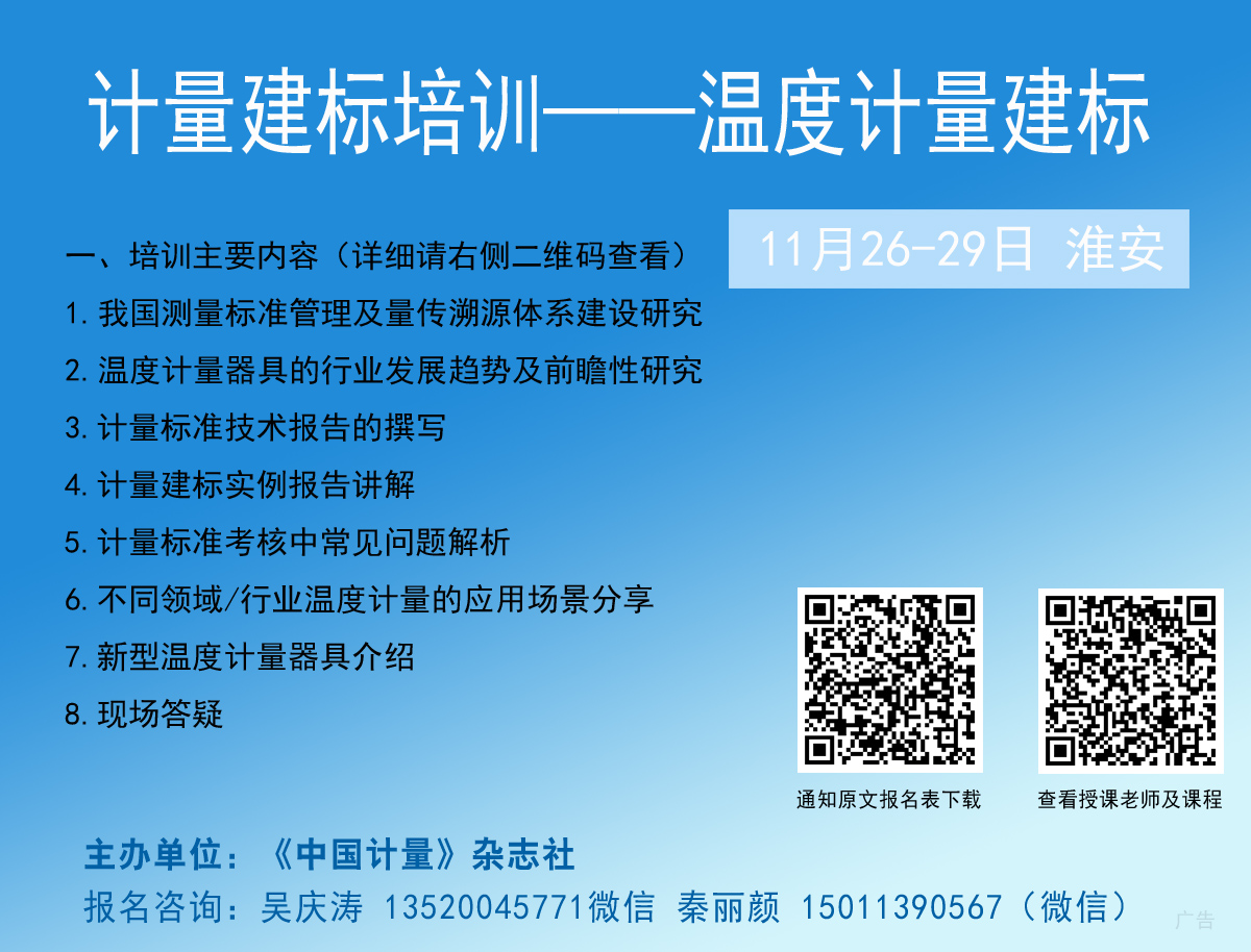 為加強(qiáng)計(jì)量人才隊(duì)伍建設(shè),指導(dǎo)有關(guān)計(jì)量人員更好地開(kāi)展計(jì)量技術(shù)報(bào)告編寫(xiě),拓展計(jì)量人員對(duì)多領(lǐng)域/行業(yè)關(guān)于計(jì)量的實(shí)際應(yīng)用,《中國(guó)計(jì)量》雜志社聯(lián)合計(jì)量芯將舉辦“第一期溫度計(jì)量建標(biāo)培訓(xùn)”,誠(chéng)邀您共赴溫度計(jì)量盛宴!