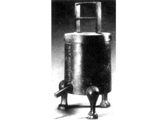 漏壺是據(jù)水流量計(jì)時(shí)的儀器,分單壺泄水型和多壺受水型兩種。千章銅漏壺是早期泄水型漏壺中最大、保存最完好的一件。1976年發(fā)現(xiàn)于中國(guó)內(nèi)蒙古伊克昭盟杭錦旗沙丘內(nèi)。通高47.9厘米。壺身作圓筒形,下有三蹄足,接近底部有一出水管。上有雙層提梁,在壺蓋和雙層提梁當(dāng)中有上下對(duì)稱的 3個(gè)方孔,用以安插并扶直浮箭。內(nèi)底鑄“千章” 2字。壺身外面刻銘:“千章銅漏一,重卅二斤,河平二年(公元前27)四月造。”在第二層梁上加刻“中陽(yáng)銅漏” 4字。因知此器原在千章,后歸中陽(yáng),西漢時(shí),兩縣同屬西河郡。