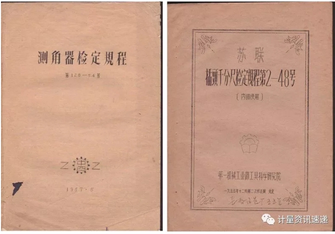 1950年新中國成立初期,中央人民政府在中央財政經(jīng)濟委員會技術管理局內設立了度量衡處,1952年劃歸中央工商管理局領導。當時,度量衡處除了做一些度量衡管理工作外,也開展一些交易用度量衡器具的檢定工作。但是,由于檢定人員少、經(jīng)費緊張、條件差等原因,度量衡器具的檢定工作做得很少,沒有編制頒布新的檢定規(guī)程。當時,計量檢定一部分是沿用國民政府度量衡檢定所的檢定方法,如臺案秤、木桿秤、直尺等;一部分是新開展的檢定項目,是根據(jù)生產(chǎn)廠和使用單位等的意見建議制定的檢定方法,如體溫計、密度計等;還有一部分是參照前蘇聯(lián)的檢定規(guī)程,如游標卡尺、千分尺等。直到1953年,在一機部內成立中央計量檢定所籌備處后,才開始陸續(xù)組織工程技術人員翻譯蘇聯(lián)的部分計量器具檢定規(guī)程,供計量檢定時參照使用(見下圖)。