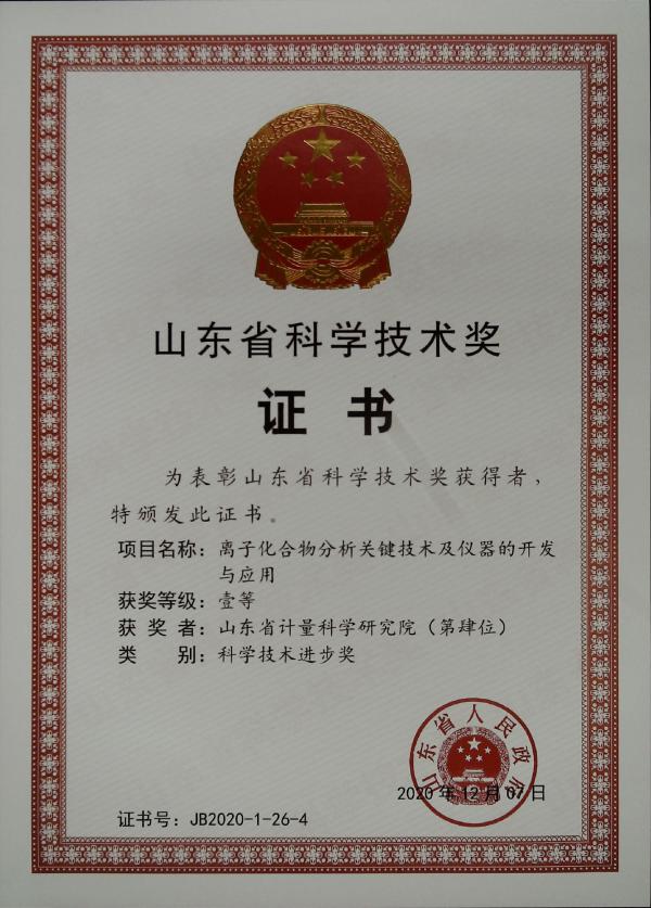 4月16日,山東省人民政府召開(kāi)山東省科技創(chuàng)新大會(huì),山東省計(jì)量院參與的“離子化合物分析關(guān)鍵技術(shù)及儀器的開(kāi)發(fā)與應(yīng)用”項(xiàng)目獲山東省科技進(jìn)步獎(jiǎng)一等獎(jiǎng)(第肆位)并得到表彰。