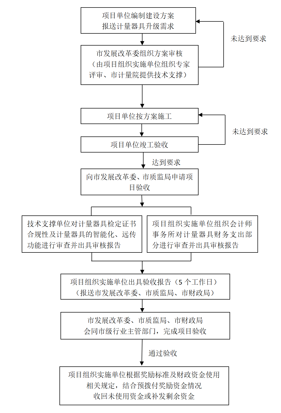 2015年初,北京市開始具體實施能源計量器具的配備和智能化配置工作,工作流程主要包括方案申報、項目施工、雙重驗收、撥付資金四個階段,具體工作流程如圖3所示。