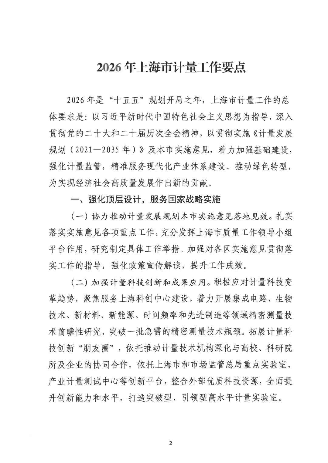 《2026年上海市計(jì)量工作要點(diǎn)》的通知