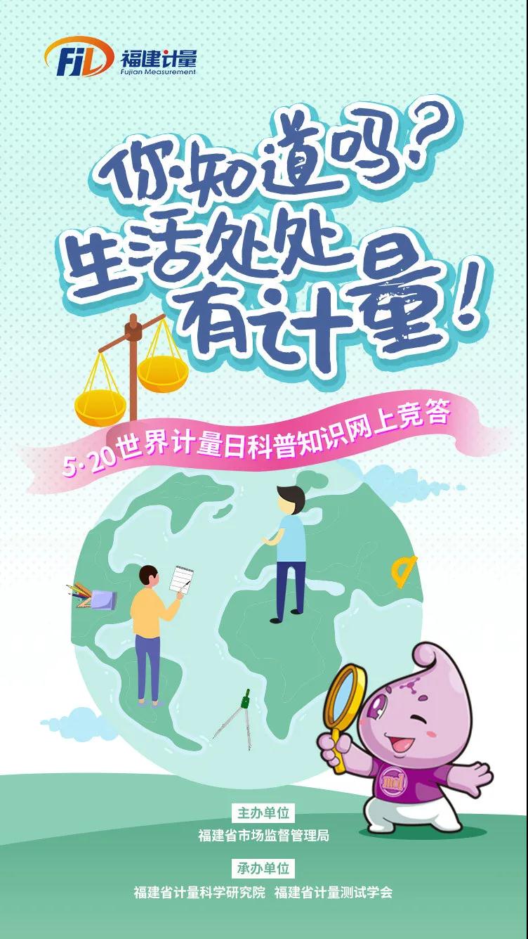 今年福建省市場(chǎng)監(jiān)管局將與省計(jì)量科學(xué)研究院、省計(jì)量測(cè)試學(xué)會(huì)攜手開展“5·20計(jì)量科普知識(shí)網(wǎng)上競(jìng)答”活動(dòng),活動(dòng)于5月18日啟動(dòng),并將一直持續(xù)至5月22日。