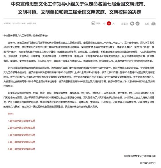 5月23日,中央宣傳思想文化工作領(lǐng)導小組發(fā)布《關(guān)于認定命名第七屆全國文明城市、文明村鎮(zhèn)、文明單位和第三屆全國文明家庭、文明校園的決定》,甘肅省計量研究院被授予“全國文明單位”稱號,這也是全國精神文明建設領(lǐng)域的最高榮譽。