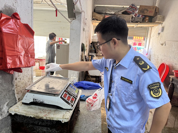 精準(zhǔn)“把脈”,嚴(yán)查細(xì)檢保公平。工作人員深入轄區(qū)農(nóng)貿(mào)市場、水果店、鹵菜店、黃金飾品店等經(jīng)營場所,逐戶逐秤進(jìn)行“體檢”。對于檢測中發(fā)現(xiàn)的個(gè)別存在偏差、標(biāo)簽?zāi):摹皢栴}秤”,當(dāng)場責(zé)令商戶停用并限期送修,從源頭上杜絕缺斤短兩。