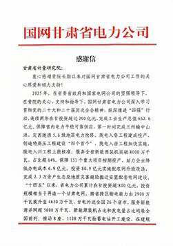 此次評價工作的順利完成,是甘肅省計量研究院服務(wù)地方經(jīng)濟發(fā)展、履行法定計量職責(zé)的生動體現(xiàn),也彰顯了本院在電能計量領(lǐng)域的專業(yè)能力與責(zé)任擔(dān)當(dāng)。收到感謝信后,全院干部職工備受鼓舞。院相關(guān)負(fù)責(zé)人表示,這份贊譽既是肯定更是責(zé)任,未來,甘肅省計量研究院將繼續(xù)秉持 “精準(zhǔn)計量、服務(wù)發(fā)展” 的宗旨,持續(xù)深化與國網(wǎng)甘肅省電力公司的戰(zhàn)略合作,在智能電網(wǎng)計量、新能源計量監(jiān)測等前沿領(lǐng)域加大技術(shù)研發(fā)力度,不斷提升服務(wù)效能與專業(yè)水平,以更優(yōu)質(zhì)的計量技術(shù)服務(wù)護航區(qū)域能源安全,為甘肅經(jīng)濟社會高質(zhì)量發(fā)展注入計量力量。