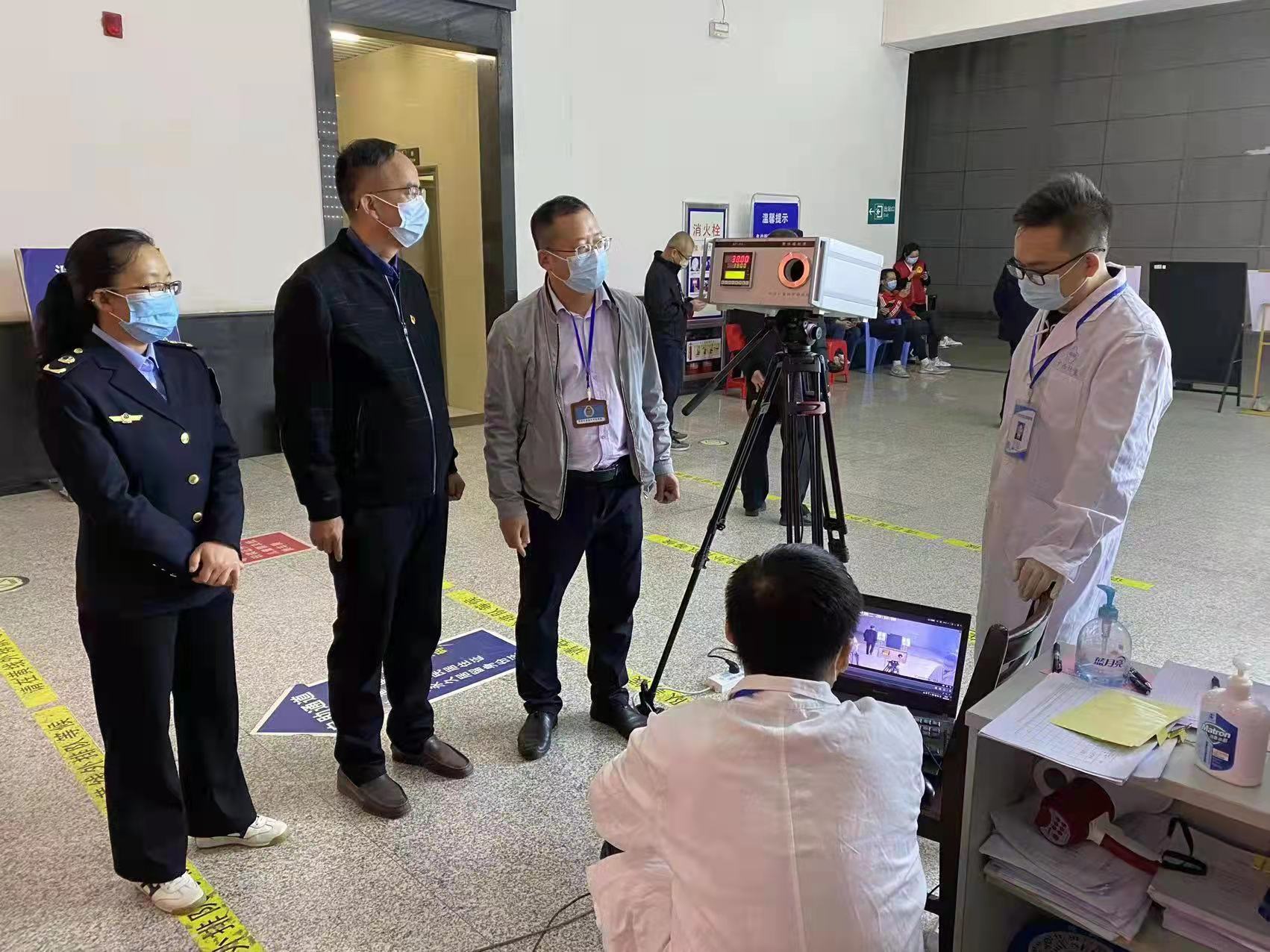 技術(shù)專家于當晚7時許抵達梧州,隨即與當?shù)厥袌霰O(jiān)管部門一起,深入藤縣高鐵站、梧州西江機場、梧州南高鐵站,對上述場所使用的紅外測溫儀和紅外篩檢儀進行檢測,并將檢測情況及時反饋當?shù)毓芾聿块T。技術(shù)專家現(xiàn)場就測溫設(shè)備正確使用及日常維護進行科普,避免因操作不當造成量值不準確。