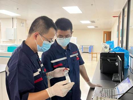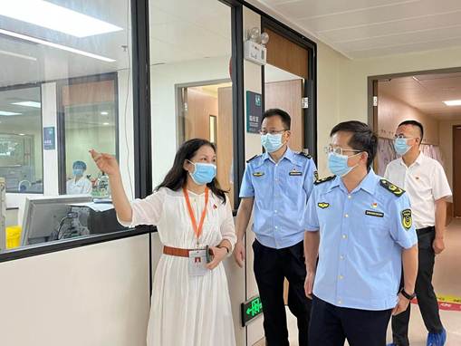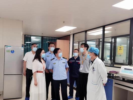 ▲市市場(chǎng)監(jiān)管局黨組書記、局長(zhǎng)、二級(jí)巡視員黃上進(jìn)在人民醫(yī)院院長(zhǎng)劉俊的陪同下,到核酸檢測(cè)實(shí)驗(yàn)室進(jìn)行現(xiàn)場(chǎng)檢查指導(dǎo)