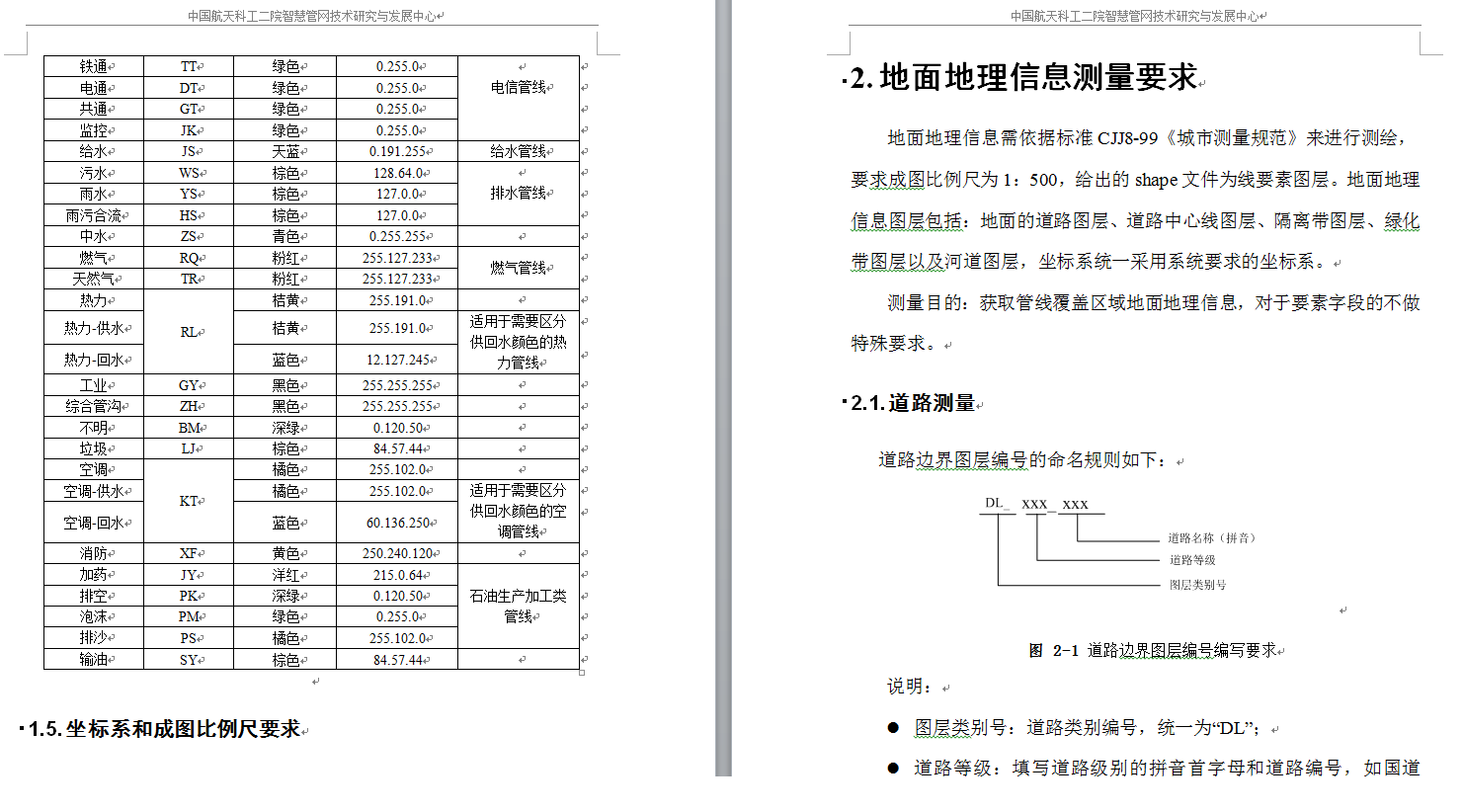 原來(lái),智慧市政團(tuán)隊(duì)有著一套完整的數(shù)據(jù)處理規(guī)范,規(guī)范基于CJJ8-99《城市測(cè)量規(guī)范》、CJJ61-2003《城市地下管線探測(cè)技術(shù)規(guī)程》和CJJ103-44《城市地理空間框架數(shù)據(jù)標(biāo)準(zhǔn)》,明確了管線測(cè)繪的成果形式;規(guī)定了不同管線的顏色、坐標(biāo)系、比例尺;定義了管線及其附屬物、特征管點(diǎn)的編號(hào)和命名要求。除此之外,對(duì)于安裝設(shè)備的點(diǎn)位,團(tuán)隊(duì)也有著嚴(yán)格的規(guī)范來(lái)約束。