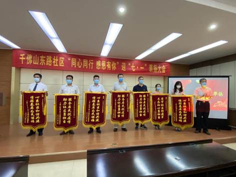6月29日,濟(jì)南市歷下區(qū)千佛山東路社區(qū)黨委組織開展“同心同行 感恩有你”迎“七一”表揚大會,山東省計量科學(xué)研究院被評為“千佛山東路社區(qū)抗疫模范先進(jìn)單位”并獲得“服務(wù)居民抗疫情 助力社區(qū)勇?lián)?dāng)”榮譽(yù)錦旗。