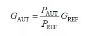 天線增益的測量中常用且較為簡單的方法為比較法,它是采用已知增益或可準(zhǔn)確計算出增益的天線作為參考天線,外加天線測試轉(zhuǎn)臺、功率信號源、場強計等,分別測量參考天線與待測天線接收到的功率,即可得出待測天線的增益GAUT為