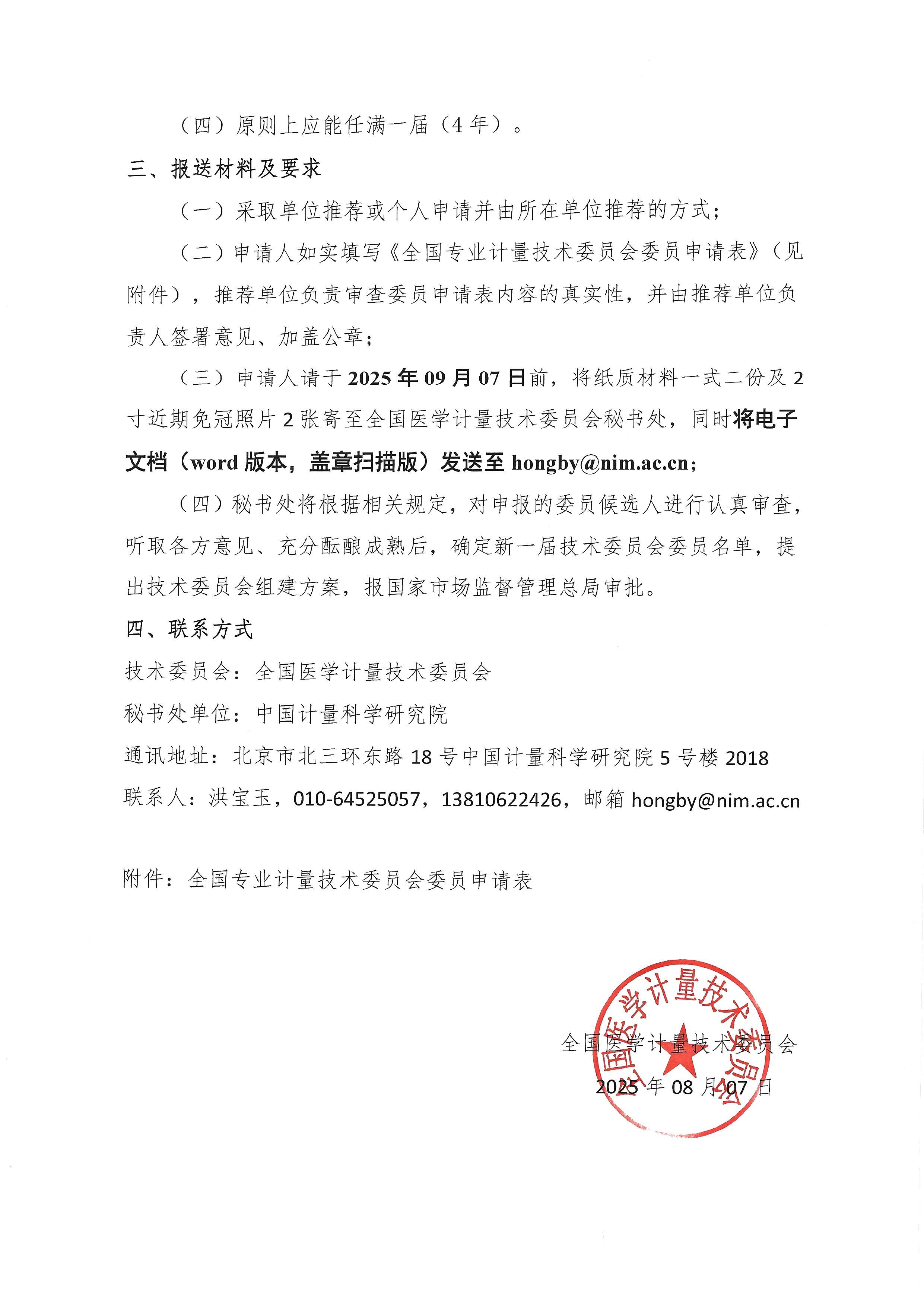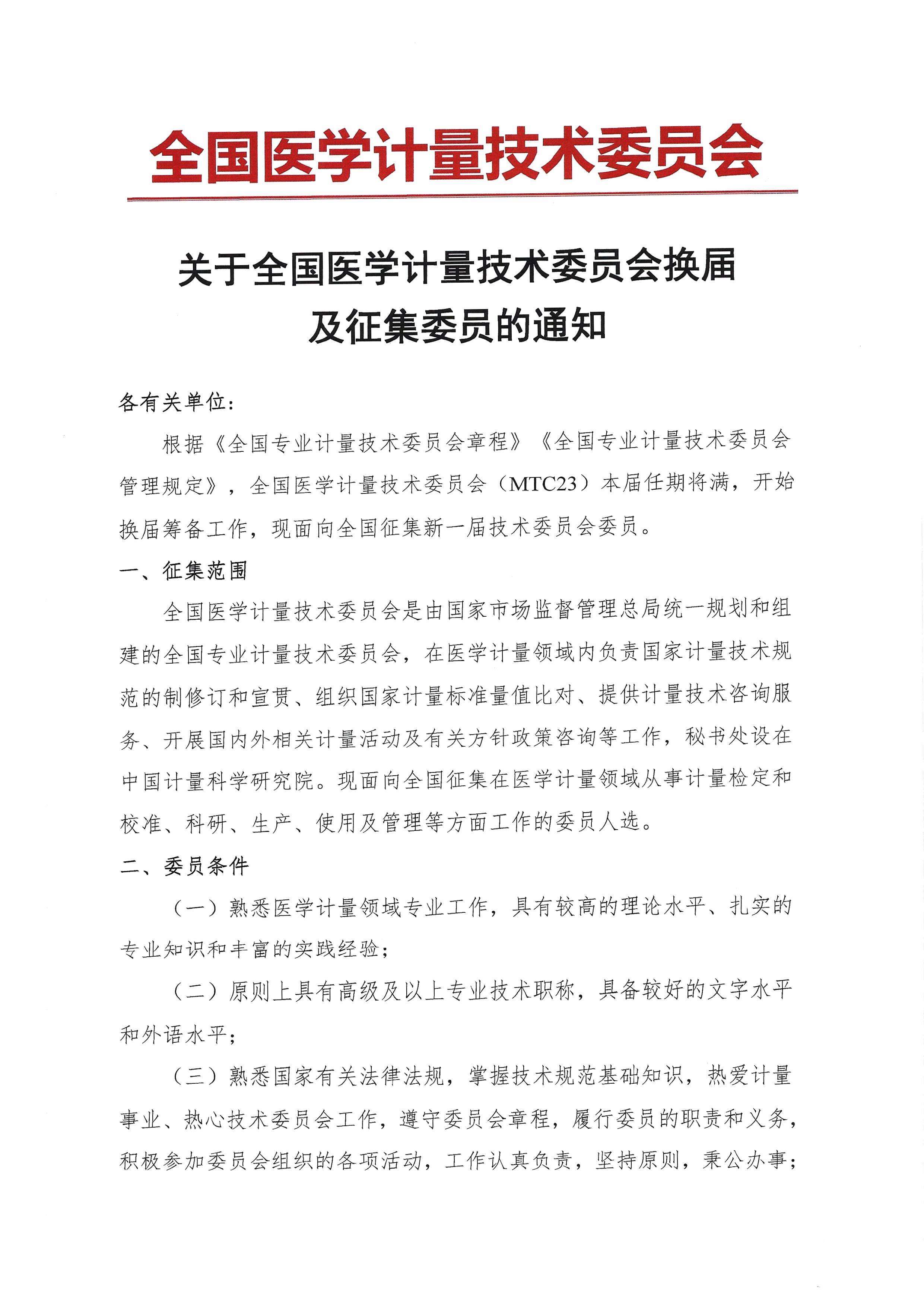 關(guān)于全國(guó)醫(yī)學(xué)計(jì)量技術(shù)委員會(huì)換屆及征集委員的通知