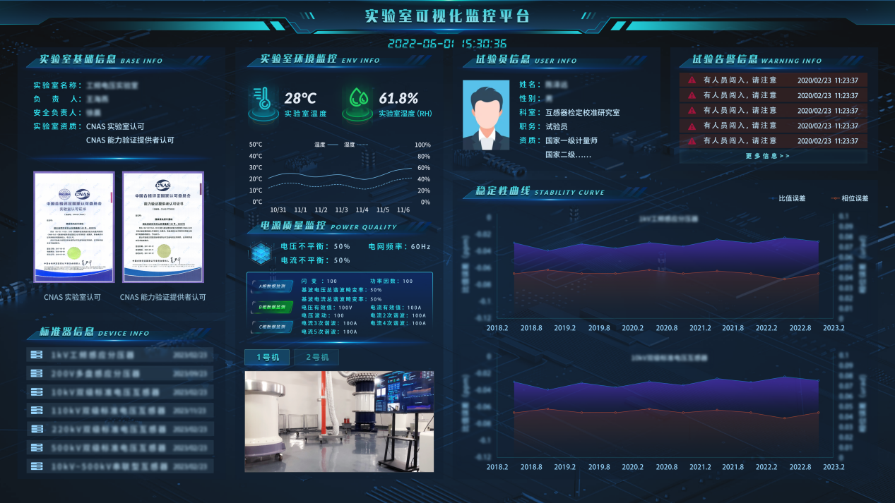 近日,國(guó)家高電壓計(jì)量站自主研發(fā)的“實(shí)驗(yàn)室可視化監(jiān)控平臺(tái)”正式完成部署,并實(shí)現(xiàn)實(shí)驗(yàn)室人員、設(shè)備及試品、環(huán)境、安全防護(hù)、業(yè)務(wù)運(yùn)行等多維度計(jì)量體系要素的監(jiān)控預(yù)警,標(biāo)志著國(guó)家高電壓計(jì)量站“智慧實(shí)驗(yàn)室”建設(shè)又上新臺(tái)階。