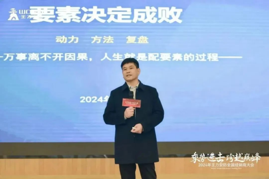 會(huì)議伊始,王力副總裁兼銷售軍團(tuán)團(tuán)長(zhǎng)王順達(dá)致開幕詞。隨后,王力董事長(zhǎng)王躍斌發(fā)表演講。他首先向到場(chǎng)的全國(guó)經(jīng)銷商伙伴們表達(dá)了誠(chéng)摯的感謝和認(rèn)可,并強(qiáng)調(diào)2023年是王力攜手經(jīng)銷商伙伴再出發(fā)的一年?;仡?023年,王力以432首戰(zhàn)為指引,首戰(zhàn)即決戰(zhàn),實(shí)現(xiàn)業(yè)績(jī)逆勢(shì)高增長(zhǎng),在行業(yè)、市場(chǎng)占領(lǐng)了龍頭地位,為實(shí)現(xiàn)“432千億戰(zhàn)略”奠定扎實(shí)基礎(chǔ)。2024年目標(biāo),公司上下將對(duì)準(zhǔn)“432三大戰(zhàn)役”,研發(fā)制造發(fā)力,營(yíng)銷精耕細(xì)作,競(jìng)爭(zhēng)雷達(dá)圖全包圍,優(yōu)勢(shì)具備定大局。