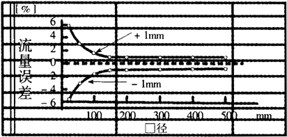 圖2 不同管道內(nèi)徑誤差±1mm對(duì)測(cè)量準(zhǔn)確度的影響
