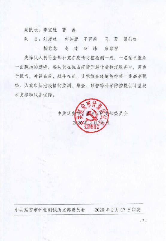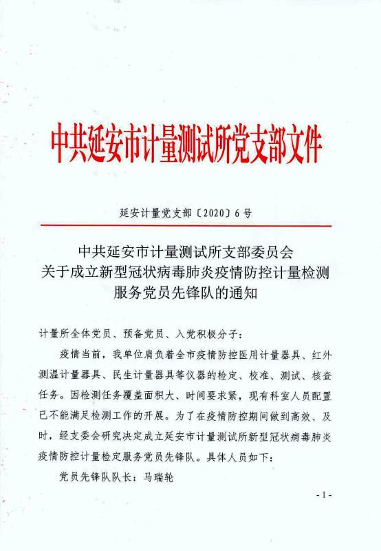 ——延安市計量所疫情防控計量檢定服務(wù)黨員先鋒隊成立