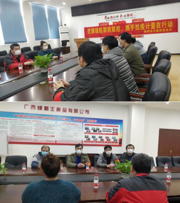 (柳州計(jì)量所黨員先鋒隊(duì)與廣西螺霸王食品有限公司相關(guān)人員進(jìn)行座談,了解企業(yè)計(jì)量保障需要,積極對企業(yè)復(fù)工復(fù)產(chǎn)進(jìn)行幫扶。)
