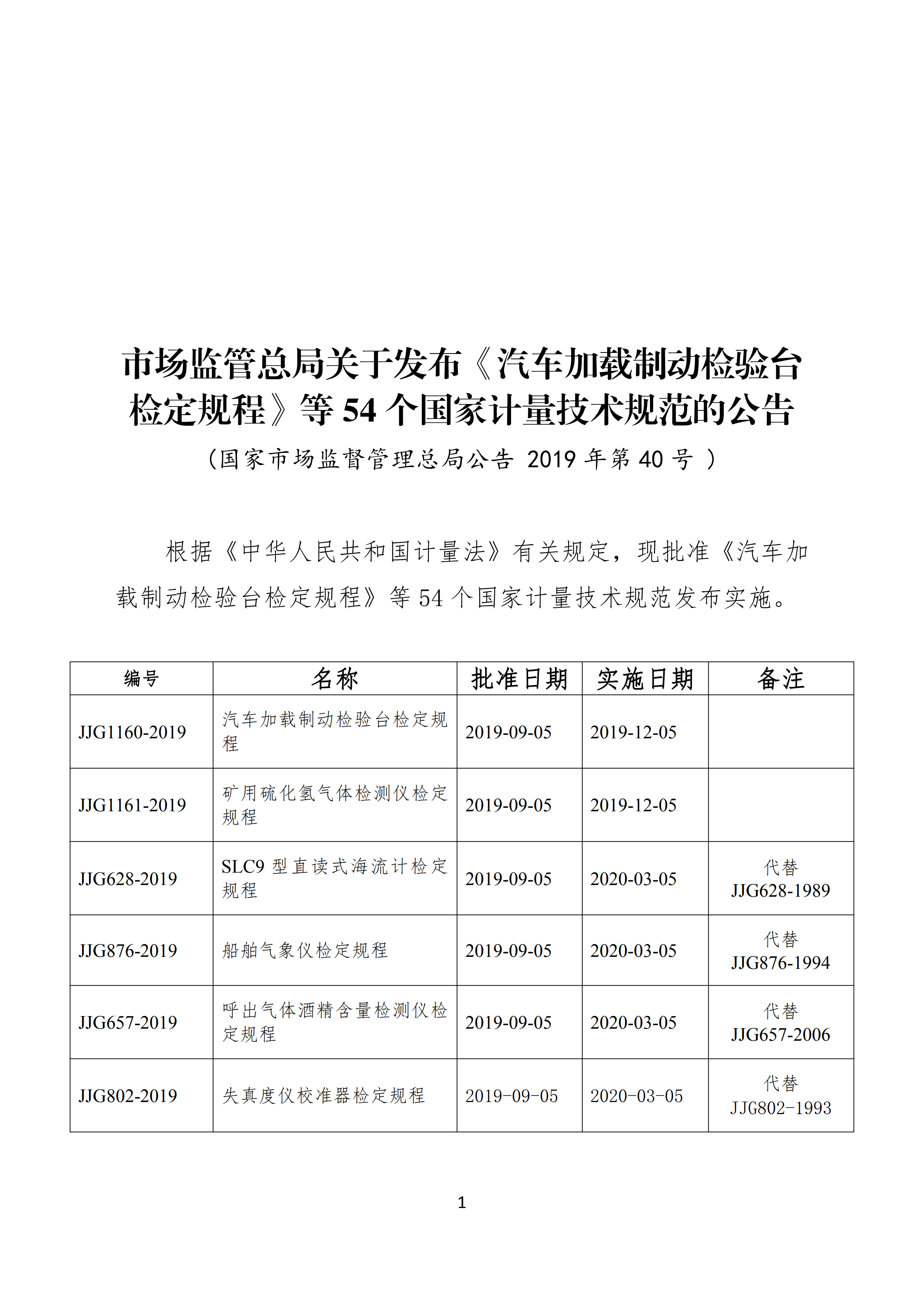市場(chǎng)監(jiān)管總局關(guān)于發(fā)布《汽車(chē)加載制動(dòng)檢驗(yàn)臺(tái)檢定規(guī)程》等 54 個(gè)國(guó)家計(jì)量技術(shù)規(guī)范的公告